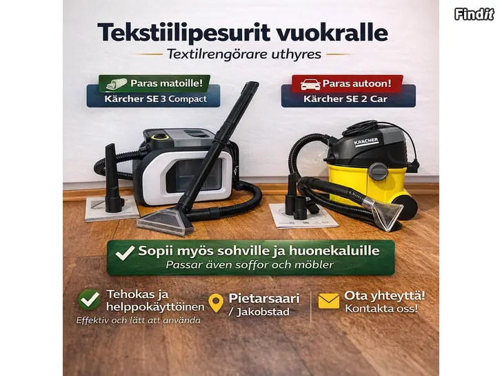 - Tekstiilipesurit vuokralle / Textilrengörare uthyres