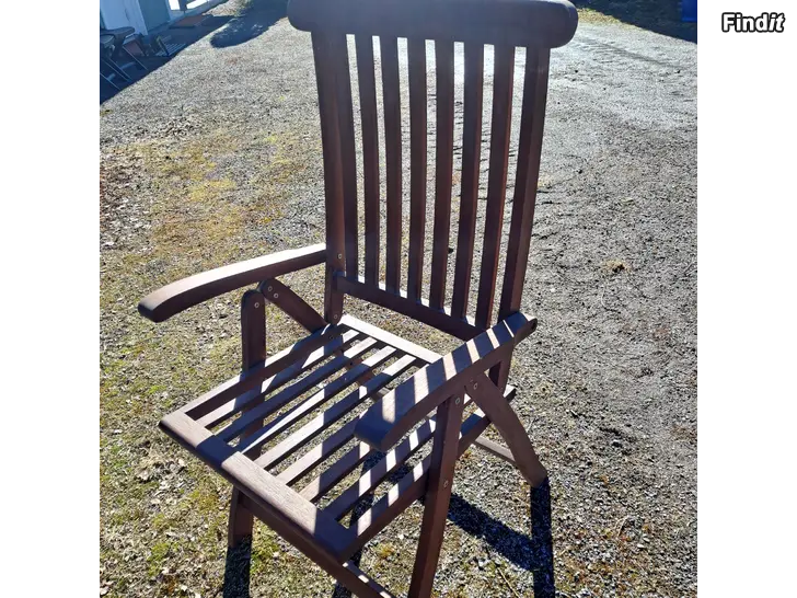 Stor trädgårdsstol i teak med armstöd. 4 st, pris 50 euro/st