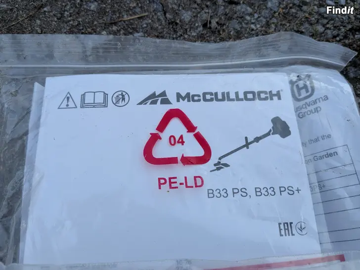 Säljes 5 år gammal McCulloch B33 kombomaskin som innehåller röjsåg, trimmer, kvistsåg och häcksax. 33 cc, 0,9 kw tvåtaktsmotor, väger endast dryga 5 kg. Alla originella delar medföljer samt bärsele, instruktionsmanual och 50+ meter 2,4 mm trimmerlina.