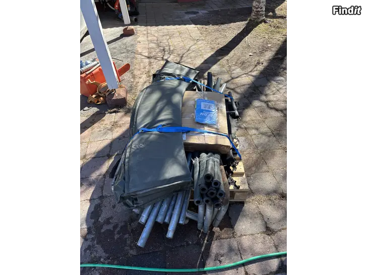 Studsmattan är nedmonterad och klar för transport ligger på pall.