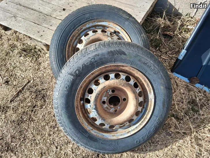 Däcken är någorlunda skick, och fälgarna är hela och i balans.