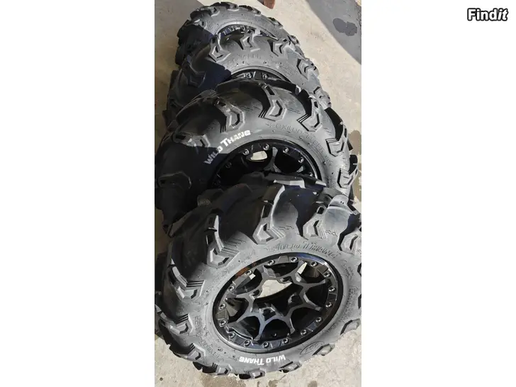 Can-am Outlander 1000 Max Xtp original Beadlock fälgar med 28 tums Wild Thang däck i hyfsat skick som är litet medkörda. Alla fyra däck är balanserade. Däcken har två rader skruvdubbar, som är lätta att ta bort. Säljes som obehövliga.