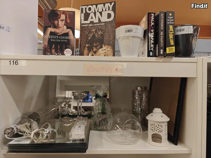 Finns kläder, böcker, inredningsprylar lampor, speglar till tex hemmagym mm., hundtillbehör, skor etc. för förmånlig peng.