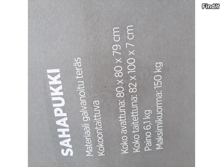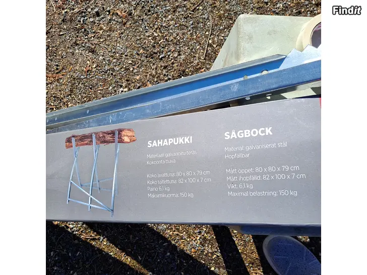 Teräksinen sahapukki. Uusi, ei ole koskaan koottu. Paketti avattu. Kaikki osat tallella. Mitat kuvassa. Maksoin siitä 25 euroa, myyn 15 eurolla.