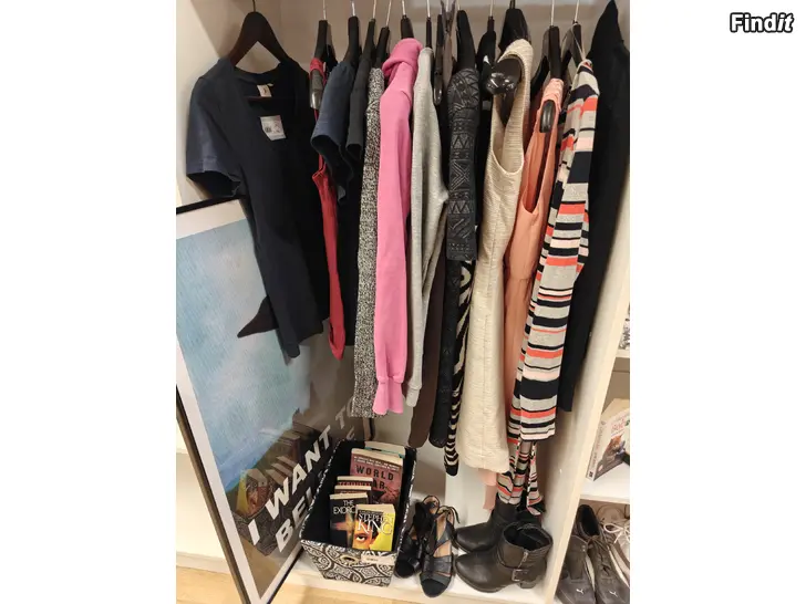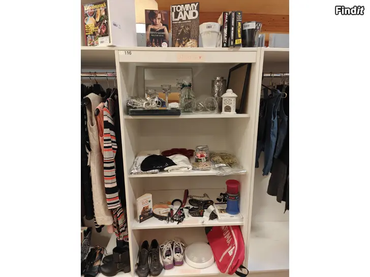 Finns till förmånlig peng kläder, böcker, inredningsprylar lampor, speglar till tex hemmagym mm., hundtillbehör, skor etc.