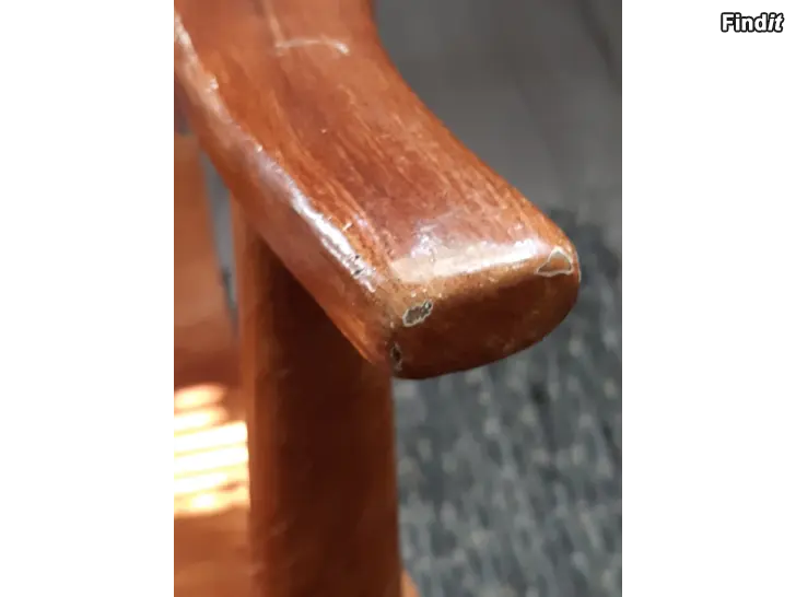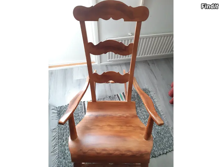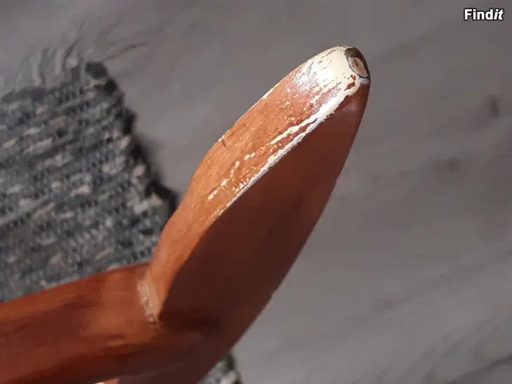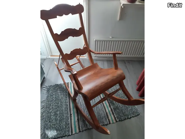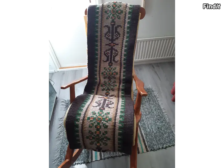 Gungstol och gungstolsmatta till salu. Gungstolens lack är något nött längst ut på medarna och armstöden, men är annars i bra skick.