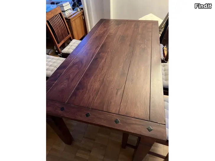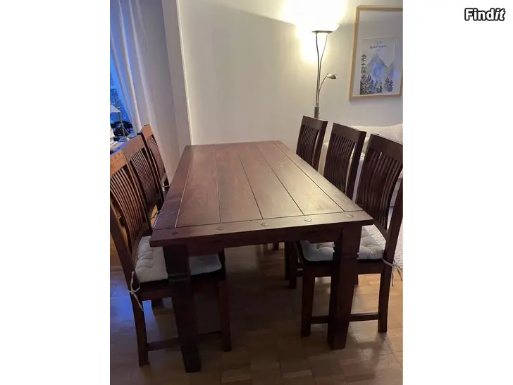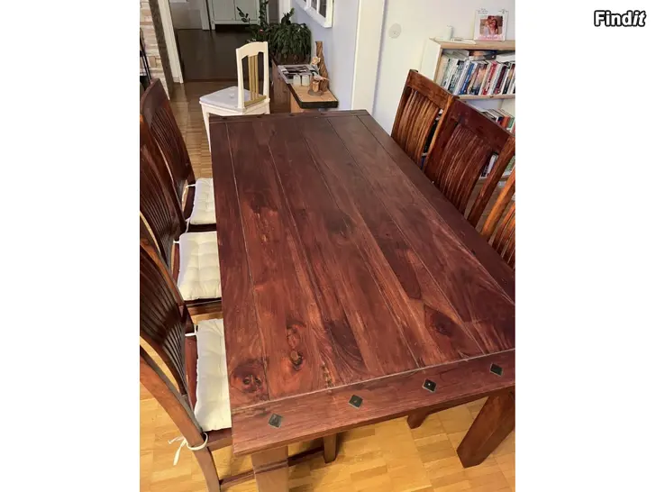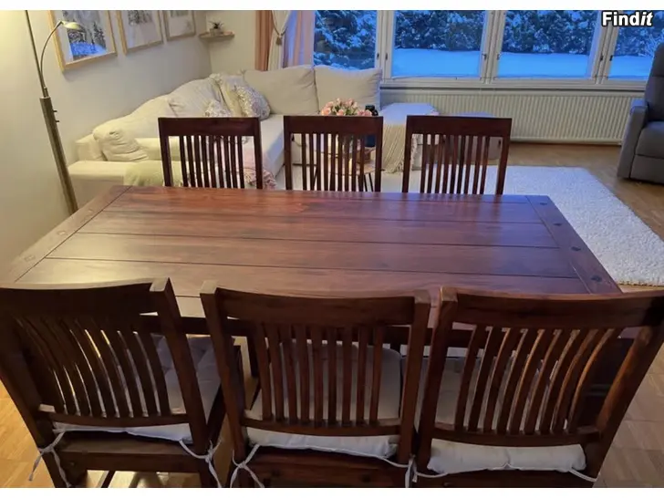 Bord 178 x 90 x 76 cm med sex stolar