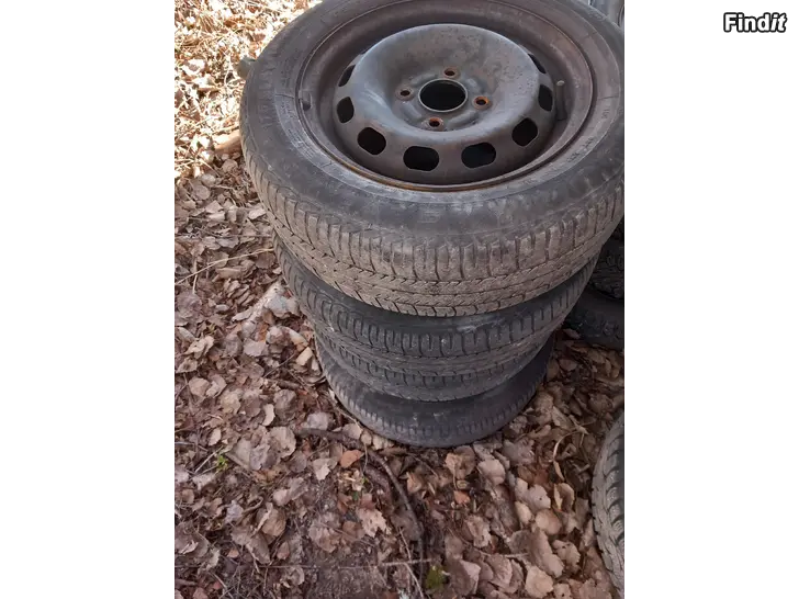 Sommardäck 175/65R14 på plåtfälg. Bultmönstret är 4×108. 4 stycken. Använda, men i okej skick.