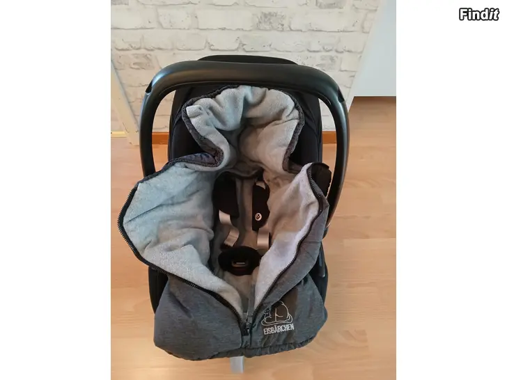 Köpt våren 2025 och tagits i bruk förra sommaren. Bas med isofix och löstagbart spädbarns inlägg. Eisbärchen vinteråkpåse fås med för 10€ köpt hösten 2025. Finns i Solf och fås till Vasa