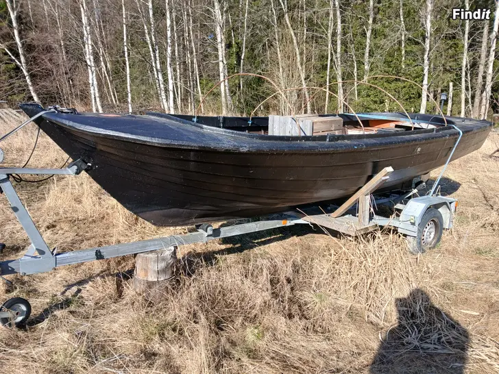 Tväraktrad tuffare säljes trä glasfibrad 5m lång.bernhard 5hk luftkyld motor båtkärran ingår ej pris 1000e tel 0503033664