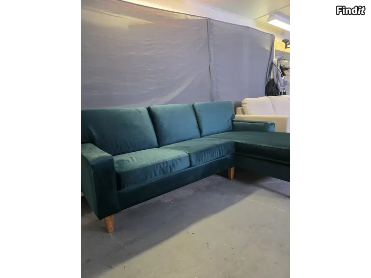 Säljer en vacker nyrestaurerad divansoffa klädd i exklusivt grönt sammetstyg. Soffan är i nyskick och ger ett elegant och tidlöst intryck perfekt som blickfång i vardagsrummet.