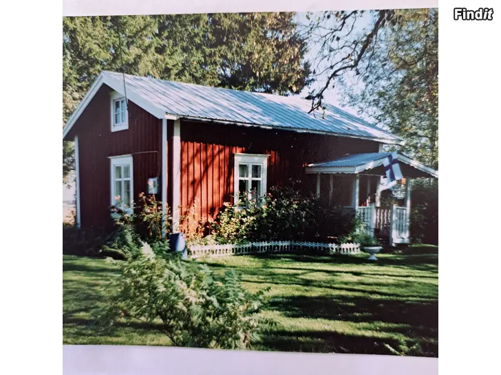 Mormorsstuga med gårdsbastu och förrådsbyggnad i Övermalax säljes. 800 m2 stor lummig tomt med elanslutning.