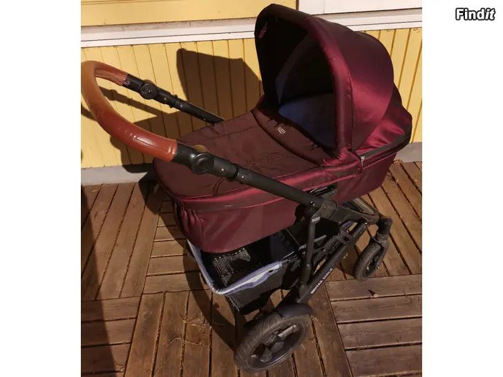 Sittdelen går också att få i liggläge 3 olika lägen. Svängbara framhjul som även går att låsa och praktisk korg under vagnen.