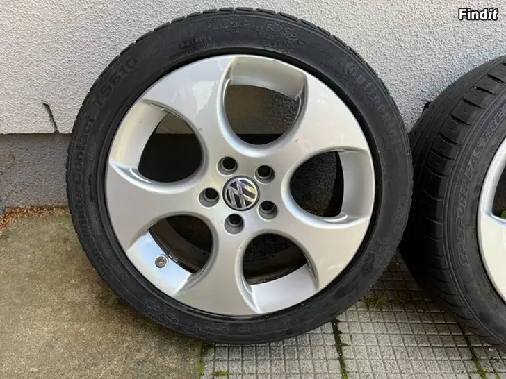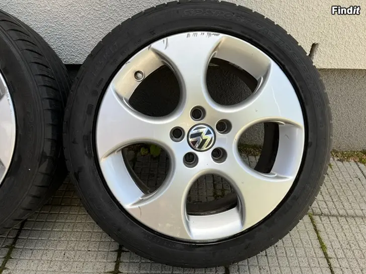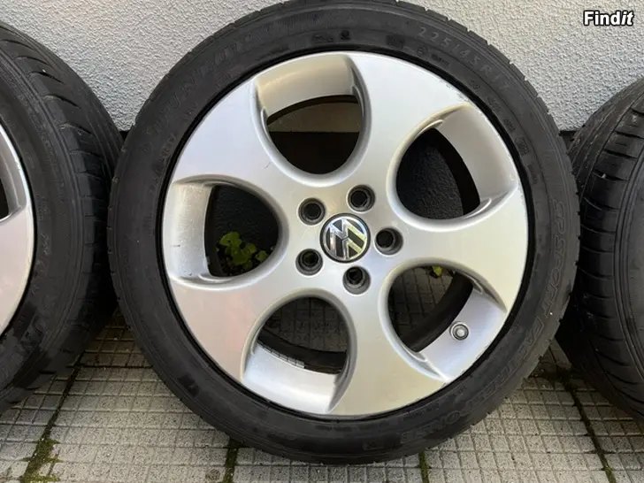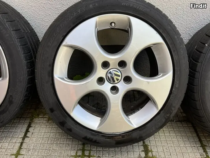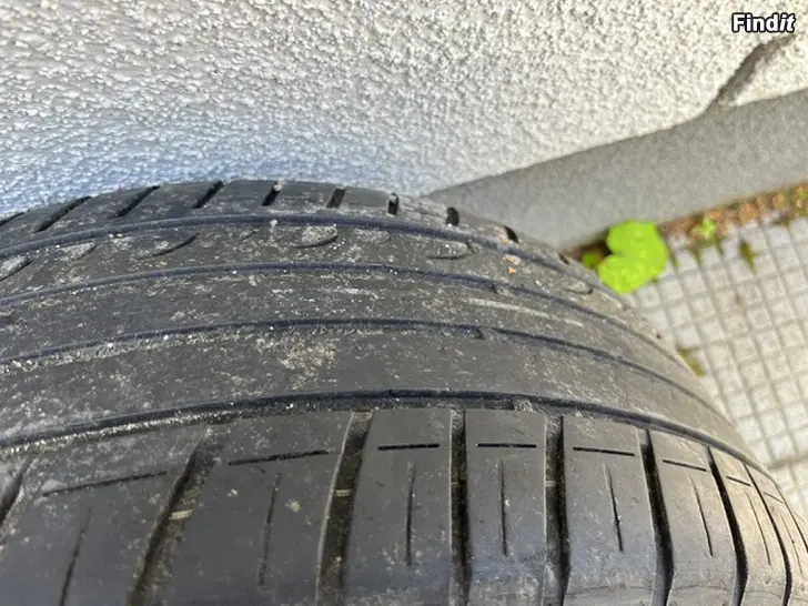 Tre fälgar med Dunlop sommardäck fortfarande visst mönsterdjup kvar. En fälg med Continentals friktionsdäck.
