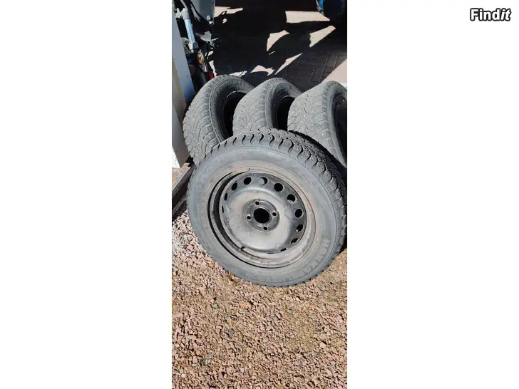 14 4x100 fälgar med vinterdäck 5-6mm, e n del dubbar saknas, men kan användas som sommardäck om dubbarna tas bort. Clio fälgar. Smedsby.