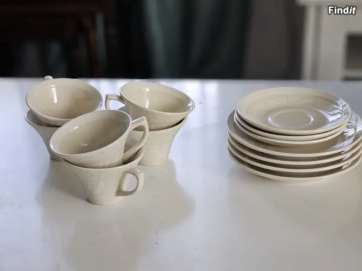 6 st kaffekoppar, 3 st fat + 4 st assietter i bra skick. Allt för 40 euro.