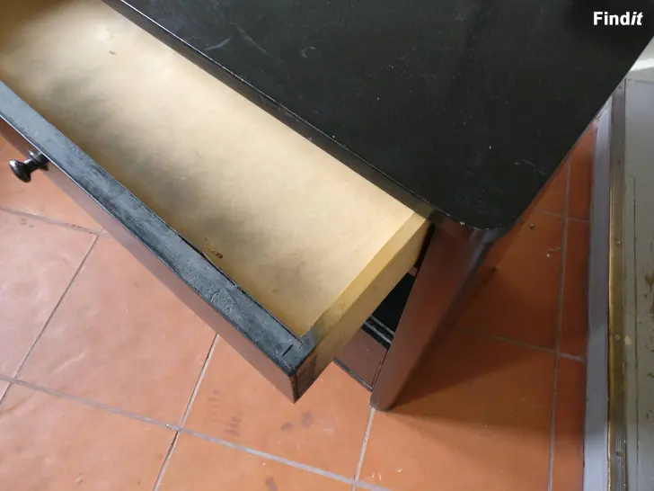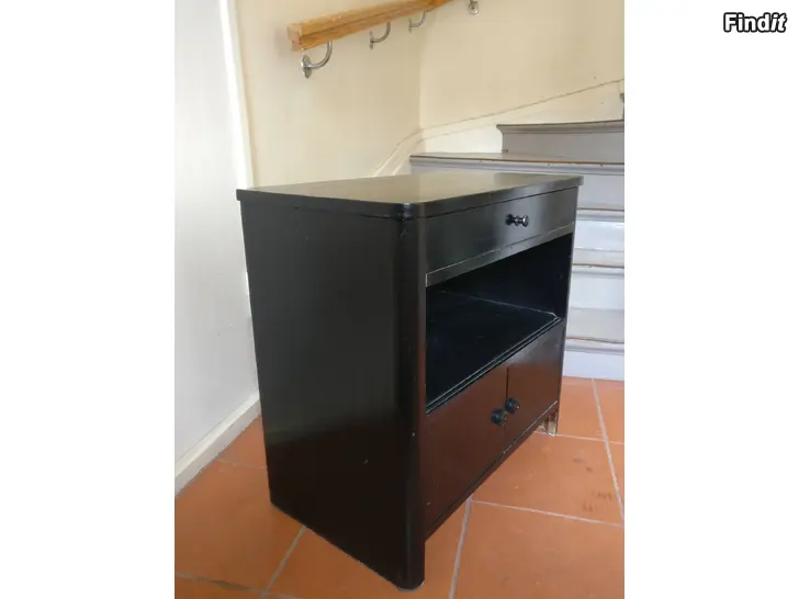 Svart funkisbyrå med rundade hörn i hyfsat vintageskick. Mått 66 x 38 cm, höjd 65 cm. Pris 20 euro. Finns i Jakobstad