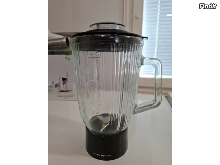 Säljes litet använd mixerkanna av glas till OBH Nordica Hercules eller First Kitchen köksassistenter.