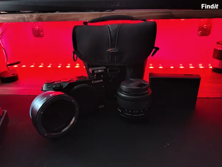 Canon EOS M3 is perfect condition. The perfect mirrorless camera to start your photographing or video hobby. The M3 has a 24.2 megapixel APS-C sensor. The M3 has an adjustable screen and electronic viewfinder. The camera has no visable scratches and had never been dropped, so it is in perfect condition. Included is the Eos m3, 15-45mm lens with Image Imagine Stabilizer charger, battery, camerabag, a EF-M adapter EF lens - M3 and a camerastand with gimbal + remote.