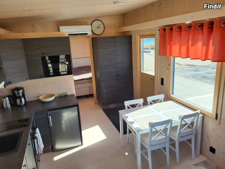 Byggd i CLT 2025 på bytesflaksskenor/rakennettu CLT:ssä 2025 vaihtolavankiskojen päällä 34500x8600 Terrass 4000x9600 Luftvärmepump/ilmalämpöpumppu Varmvattenberedare/lämminvesivaraaja Ugn, mikro Kylskåp med frysfack/jääkaappi pakastinosastolla Alla möbler ingår/kaikki kalusteet sisältyvät hintaan Säng/sänky Anders Hilding ny/uusi Terrassmöbler med sittdynor ingår/terassikalusteet istuintyynyineen sisältyvät hintaan Grillen ingår inte/grilli ei sisältyy