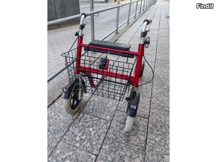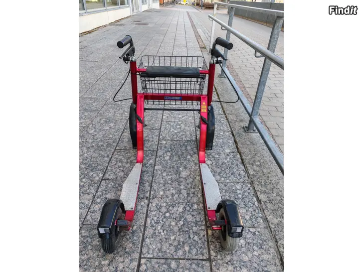 Säljes en röd och fin sparkrullator. Esla City 3600 modell. Har hela tiden förvarats inomhus. Handbroms finns på vänster/höger styre, rullar jämt och fint. Rullatorn är ställbar i höjdläge. Finns i Vasa centrum.