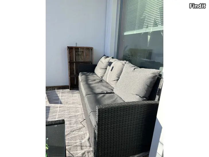 Säljer utomhusmöbler i gott skick från en inglasad balkong som är använda tre somrar. Säljes på grund av flytt och brist på förvaringsutrymme. Soffa + 2 st fotöljer + glasbord. Priset kan förhandlas.