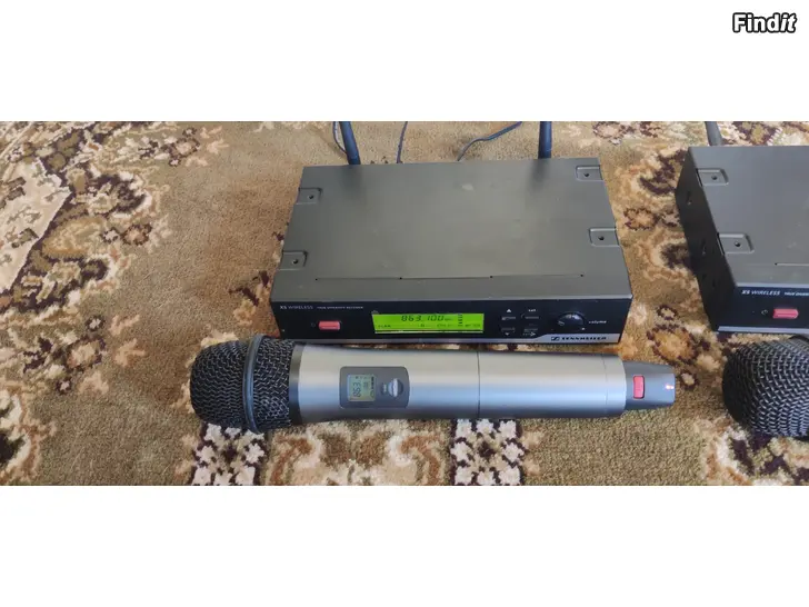 2 x langaton mikrofoni vastaanottajalla. Sennheiser XS Wireless. Juuri testattu, toimivat. Mikrofoneissa uudet patterit.