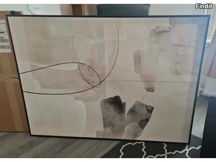 Stor fin ny tavla säljes. Canvas med svart träram. Storlek 142 cm x 104 cm. Har inte varit upphängd på väggen. Svår att få rätt färg på bilden ser rosa ut men den är mera beige/svart och lite grön. Naturfärger.