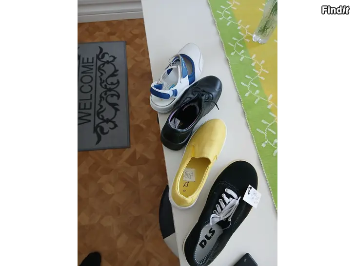 Mokka keltainen dyffi uudet ,mustat mokka.dlc uudet valkoiset työkengät uudet ja sievin vähänkäytetyt 39 num 15- 20 euro kpl
