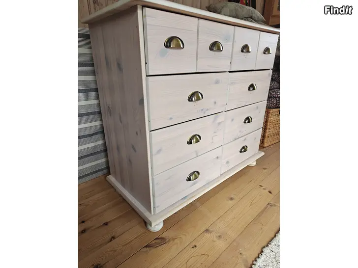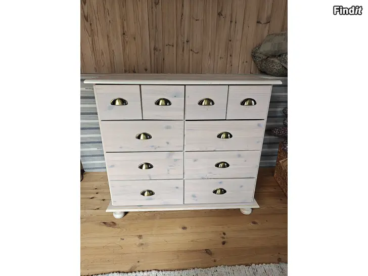 Ett skåp med 10 lådor,bra förvarings möjligheter! Storlek: längd 92cm bredd 42 och 83 hög Säljes billigt,obehövligt för oss numera! Använd som sådan eller måla upp den!