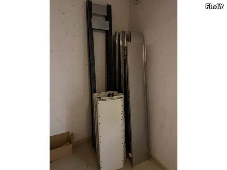 Rostfria hyllor med Sovella-fästen. 100€ för alla.