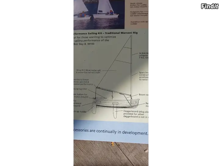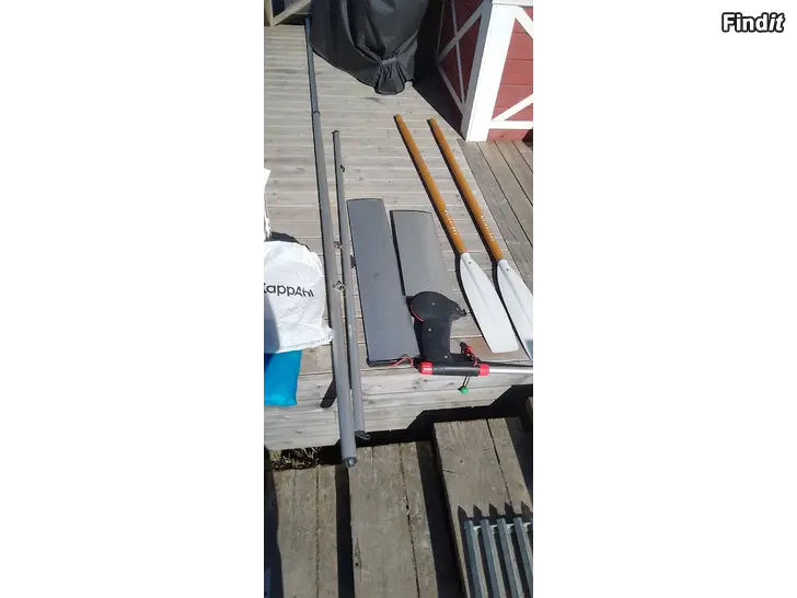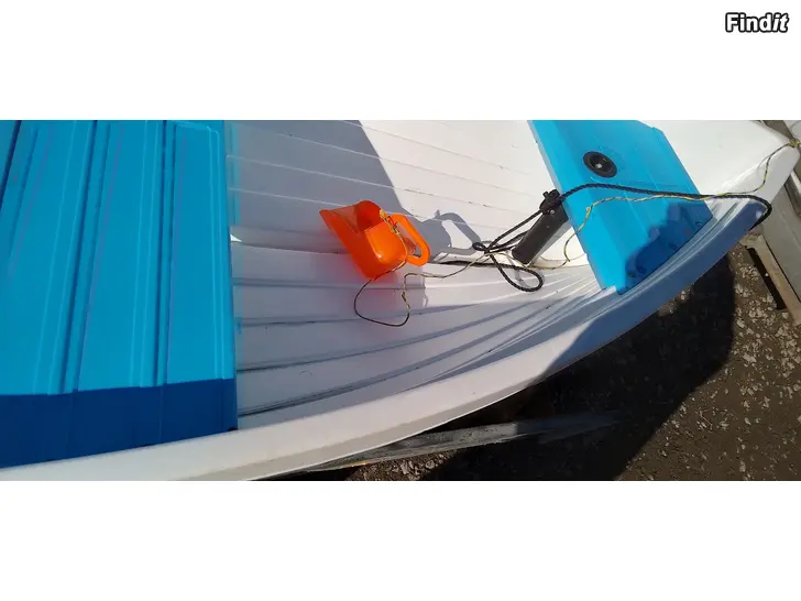 Till salu en släpjolle, motorbåt, roddbåt, och segelbåt i ny skick